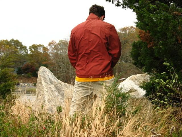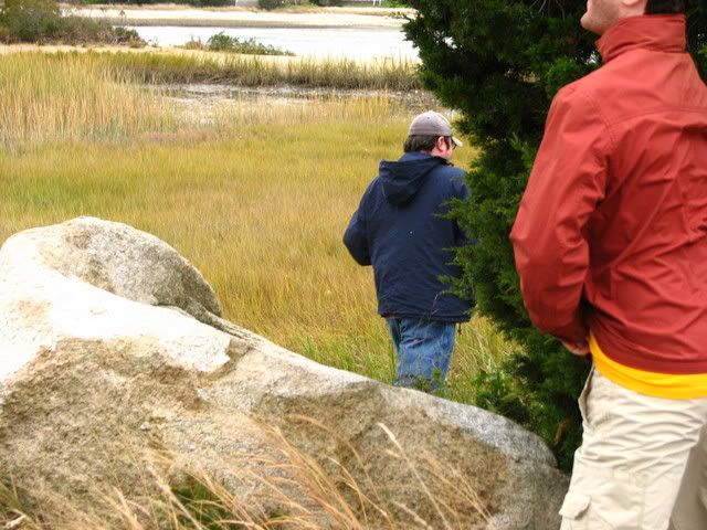 it was way too cold so adam took us to another spot. "uhh...anyone know where the walking trails are?" notice that mark is now wearing adam's hat. why? "don't worry dude, my head is too large for it to fly off of."