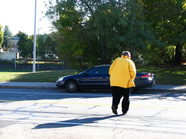 why did the man in the yellow jacket cross the road? to get to his car, silly!!
